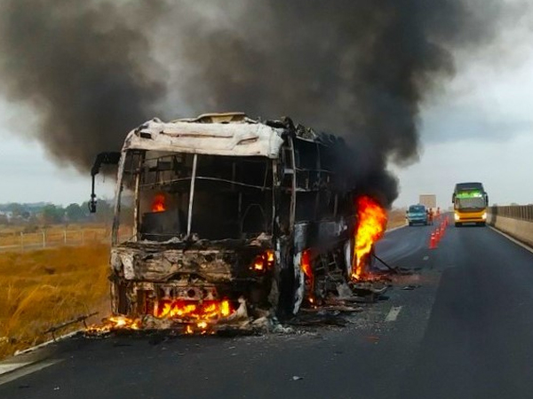 Thời điểm này, trên xe có 4 người và lúc phát hiện xe bắt đầu bốc cháy, tài xế đã cho xe tấp vào lề, mở toang cửa, người đi trên xe kịp tháo chạy khỏi xe nên không có thương vong về người.