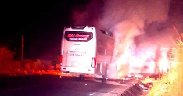 16/03/2021 17:43Xe khách giường nằm chở 11 người bốc cháy trơ khung sắt