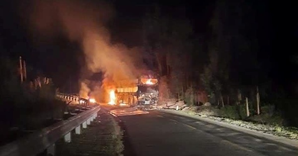 Chiếc xe khách giường nằm bất ngờ bốc cháy dữ dội giữa đêm khuya, 40 hành khách đã may mắn kịp thời chạy thoát.