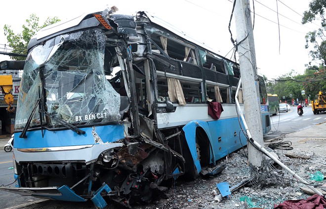 Riêng khách giường nằm bị hư hỏng nặng phần đầu, toàn bộ kính phần thân xe bên trái vỡ nát, làm tài xế Phương bị thương phải nhập viện cấp cứu. Rất may, hơn 20 hành khách trên xe không ai bị thương.