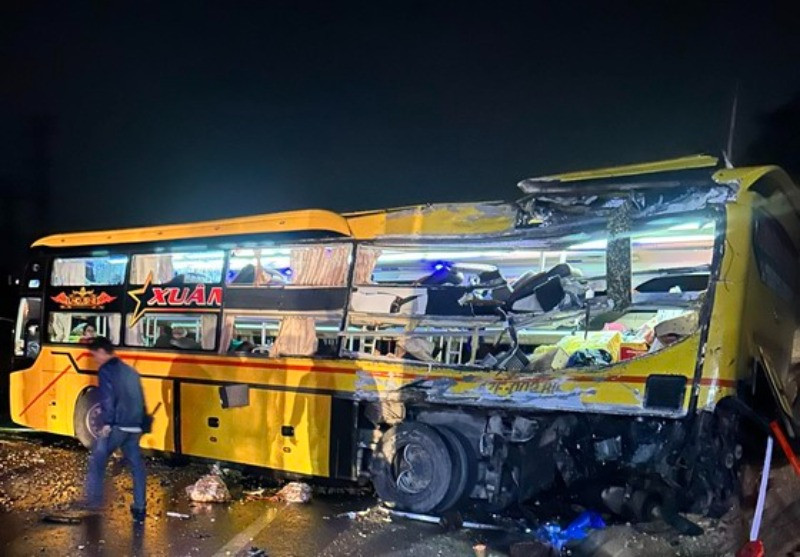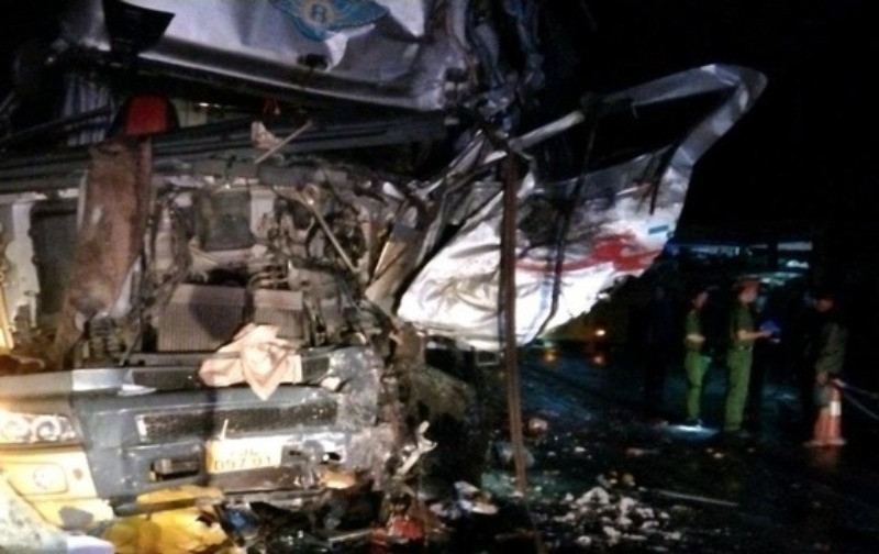 Sau cú va chạm giữa hai phương tiện, 2 người đi trên xe khách giường nằm là ông Nguyễn Văn M. (49 tuổi, trú tỉnh Thanh Hóa) và ông Phan Bá H. (43 tuổi, trú tỉnh Đắk Lắk) tử vong tại chỗ và 13 người khác bị thương.