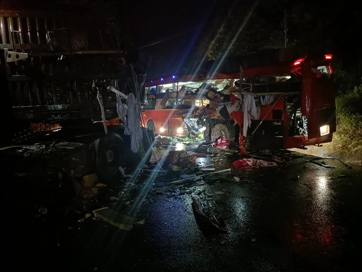 Cú va chạm mạnh khiến 6 người tử vong, trong đó có người điều khiển xe đầu kéo và 5 hành khách trên xe khách giường nằm 26F – 009.XX; 8 người bị thương gồm phụ xe đầu kéo và 7 người trên xe khách; 2 phương tiện bị hư hỏng nặng, thông tin trên VOV.vn.
