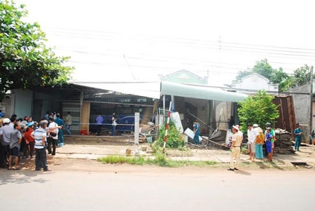 Ghi nhận tại hiện trường cho thấy, 4 căn nhà đều bị hư hỏng, trong đó nặng nhất là căn nhà của ông Dinh và quán thịt cầy của ông Nhượng. Các vật dụng trong quán đều bị hư hỏng. Chiếc xe khách nằm lọt thỏm bên trong quán.