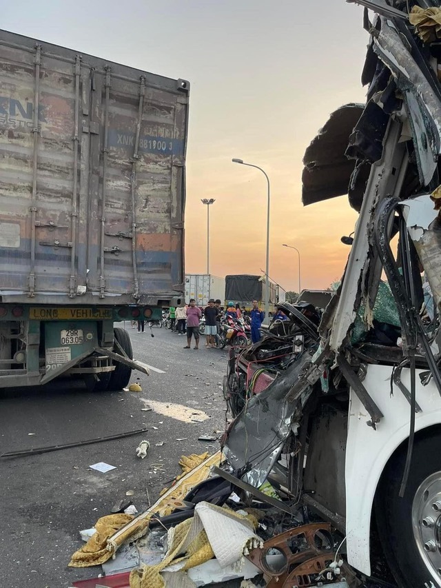 Cú tông mạnh, khiến phần đầu xe khách bẹp dúm, biến dạng hoàn toàn. 12 hành khách bị thương nhẹ đã được đưa tới bệnh viện đa khoa Long Khánh cấp cứu. Riêng tài xế bị thương nặng đã được chuyển lên bệnh viện tuyến trên TP HCM nhưng đã không qua khỏi, theo Người lao động.