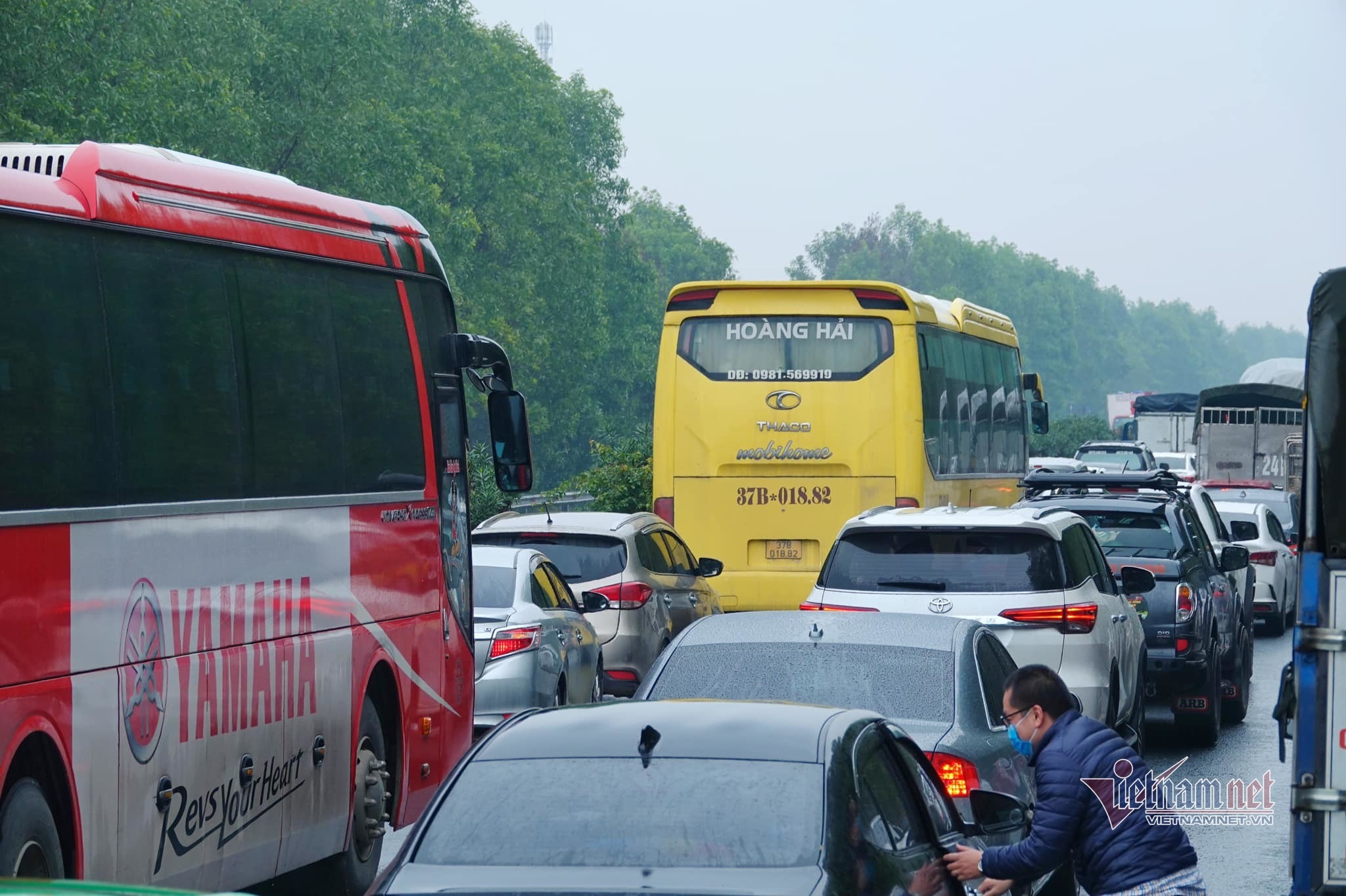 Và tới hơn 14h hiện trường vụ tai nạn được xử lý, nhưng tình trạng ùn ứ kéo dài vẫn tiếp diễn khi lượng xe của người dân về quê ăn Tết trở lại Hà Nội làm việc trong ngày nghỉ vẫn rất đông.