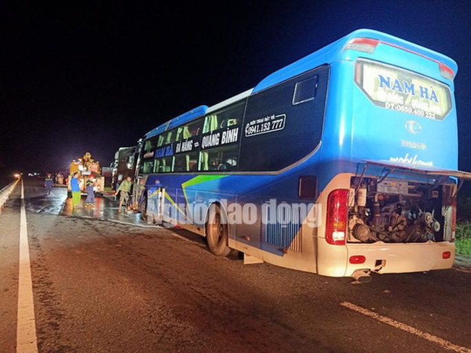 Trước đó, vào khoảng 1 giờ cùng ngày, xe khách BKS 43B-028.75 do Phạm Văn Công (SN 1984; ngụ huyện Lệ Thủy, tỉnh Quảng Bình) điều khiển theo hướng Bắc – Nam. Khi đến vị trí nói trên đã va chạm vào sau xe ôtô tải BKS 37C-166.65 do anh Trần Văn Quyền (SN 1982; ngụ TP Vinh, tỉnh Nghê An) điều khiển theo hướng lưu thông cùng chiều. Thời điểm này xe tải bị hỏng lốp đang sửa chữa trên đường thì bị xe khách tông vào.