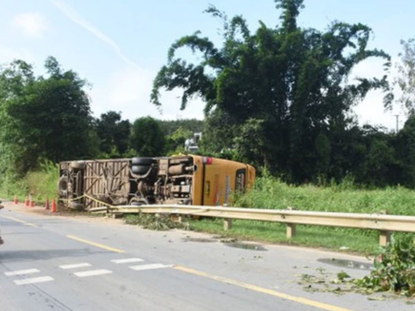 Sau va chạm, chiếc xe khách mất lái và lật nghiêng bên đường. Hậu quả, vụ tai nạn khiến một người đi trên xe khách tử vong và bốn người khác bị thương.