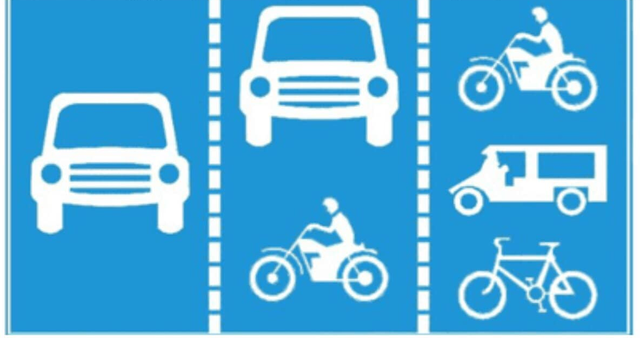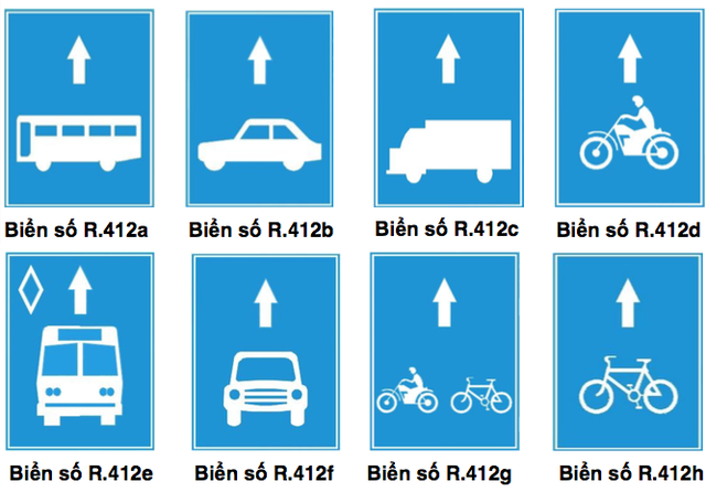 Làn đường này được đặt biển báo mã R.411. Biển báo này có tác dụng thông báo số lượng làn đường và hướng đi của mỗi làn - người tham gia giao thông phải đi đúng làn đường được chỉ dẫn phù hợp với hướng đi của mình.