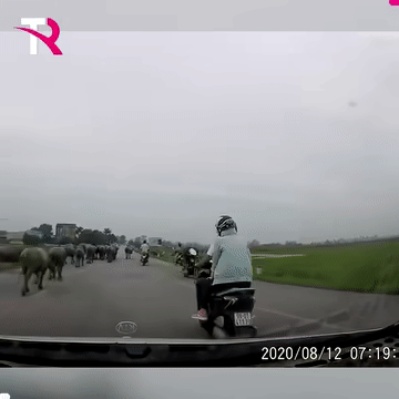 Đi xe máy vào đoạn đường đúng lúc có một đàn trâu đi ngang qua, đôi nam nữ ngay sau đó liền ngã kềnh xuống đường vì lý do khó đỡ này.