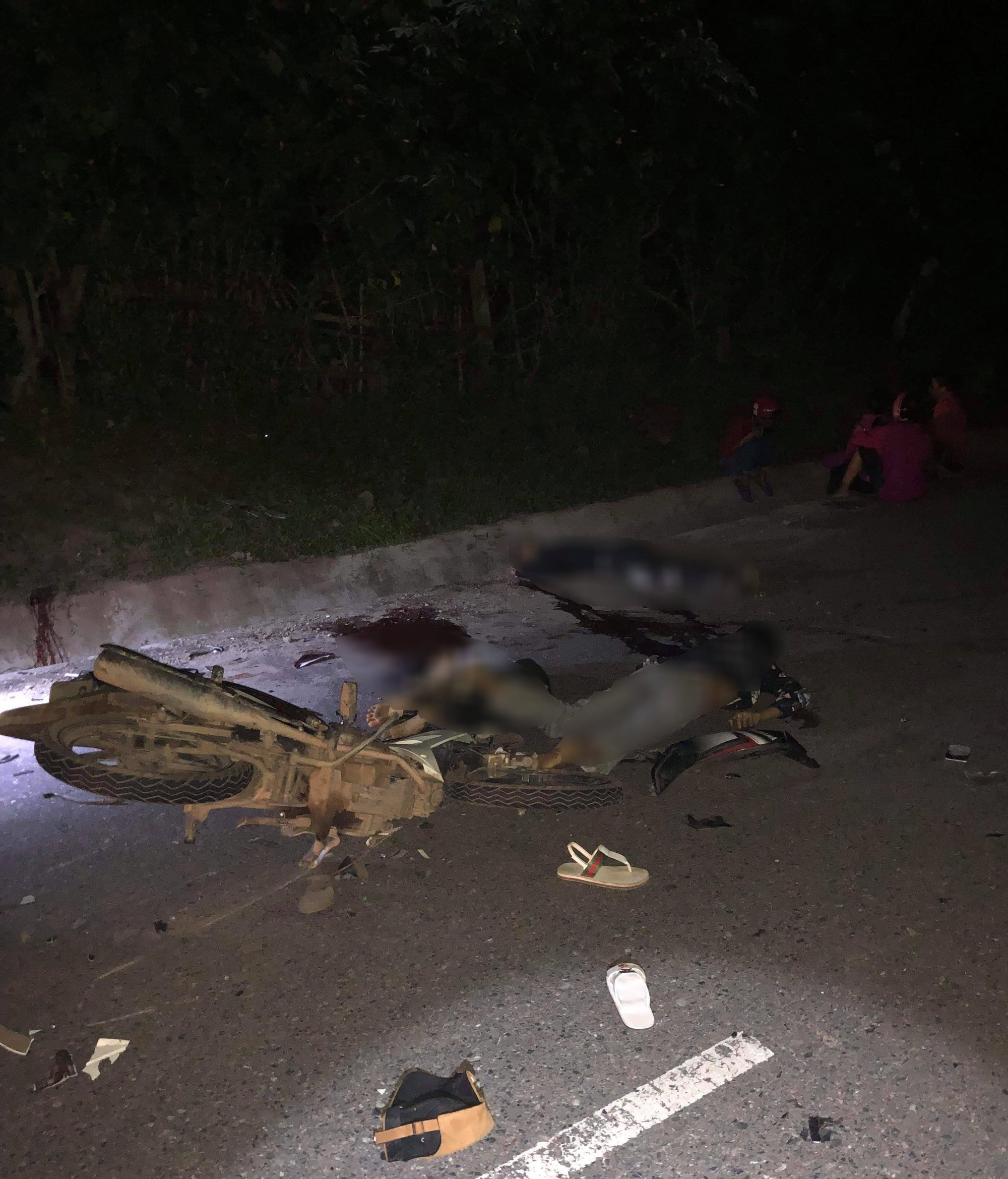 Cú va chạm mạnh khiến Tuất, Nghiệp, Lân, Tiên tử vong; hai người còn lại bị thương nhẹ. Tại hiện trường, 2 xe máy nát bét sau va chạm.