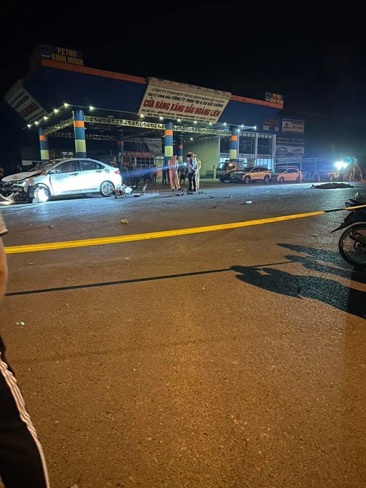 Cú đâm rất mạnh khiến 3 người ngồi trên xe máy bị hất văng lên cao rồi rơi xuống đất. G.S.V. tử vong tại chỗ, 2 phương tiện bị hư hỏng nặng.