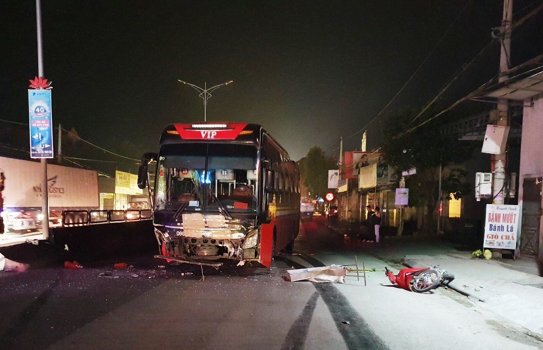 Vào khoảng 3h ngày 30/11, chiếc xe khách giường nằm BKS43B – 024.74 do tài xế Trương Tấn Sơn (SN 1982), trú xã Duy Trung, huyện Duy Xuyên, tỉnh Quảng Nam điều khiển lưu thông theo hướng Nam - Bắc, khi đi qua địa phận thị trấn Cầu Giát, huyện Quỳnh Lưu, tỉnh Nghệ An, bất ngờ tông vào xe máy mang BKS 37L1 - 302.54 trên xe có ba người đã rẽ ngang đường.