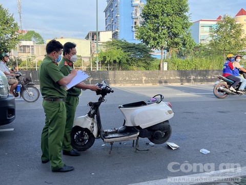 Tại hiện trường, chiếc xe máy và thi thể nạn nhân nằm cách nhau khoảng 5m. Trong đó chiếc xe máy đã bể nát, hư hỏng nặng.