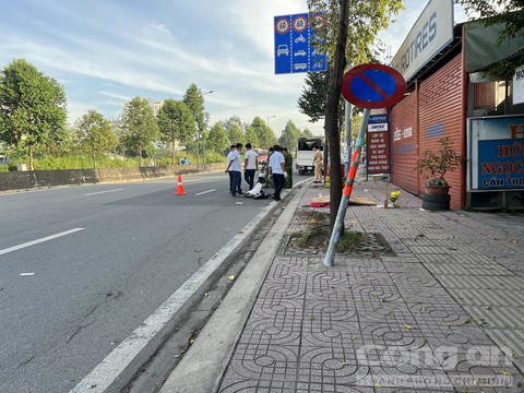 Khi qua khỏi giao lộ với đường Kha Vạn Cân khoảng 500m (thuộc phường Linh Đông, TP Thủ Đức) thì bất ngờ xe lao lên vỉa hè đường bên phải tông vào cột biển báo cấm dừng đỗ.