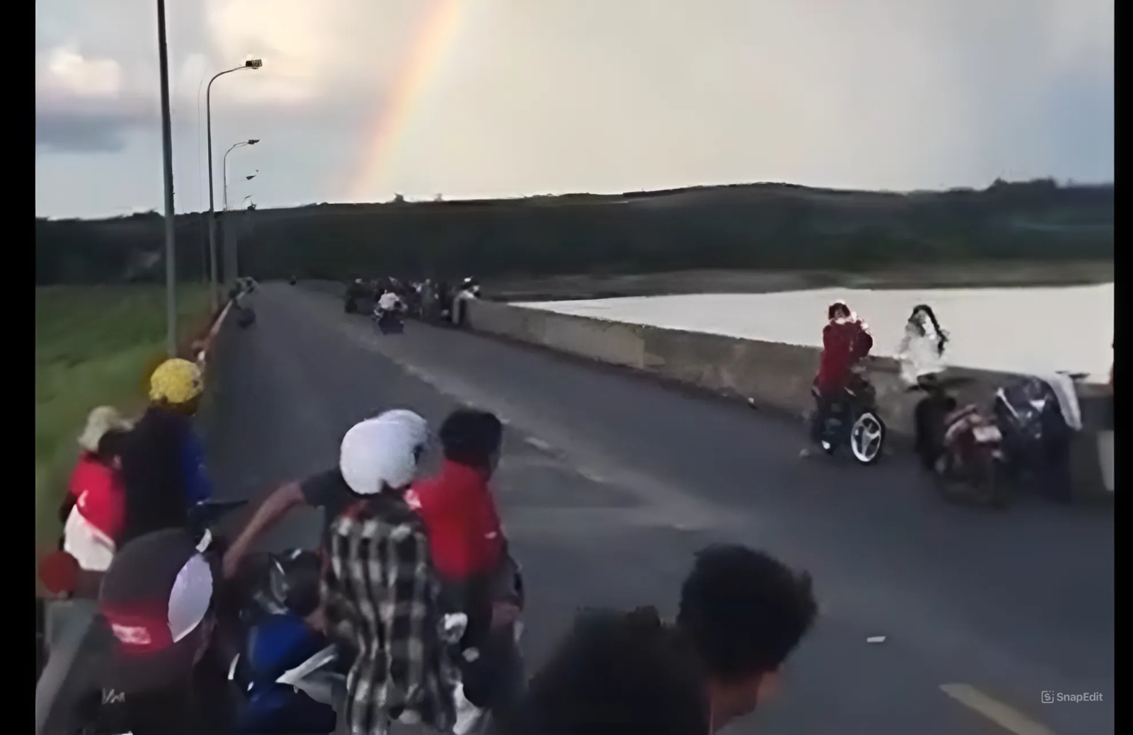 Theo một đoạn clip đăng tải trên mạng xã hội, vào thời điểm trên, có hàng chục em học sinh, thanh thiếu niên tụ tập trên bờ đập thủy điện.