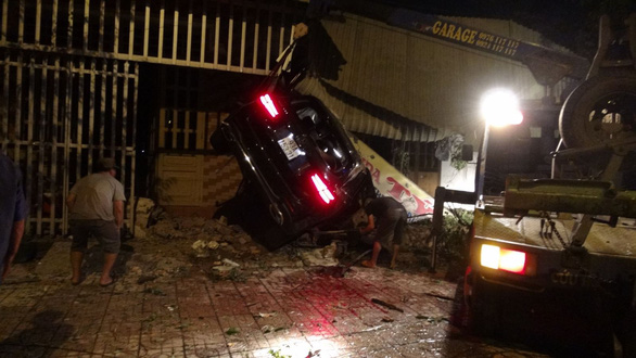 Chiếc xe tiếp tục lao thẳng lên phía trước đâm xuyên mái hiên trước nhà bà Nguyễn Thị Mậu bên cạnh và chỉ dừng lại khi đâm đổ sập cửa nhà ông Phạm Văn Thắng.