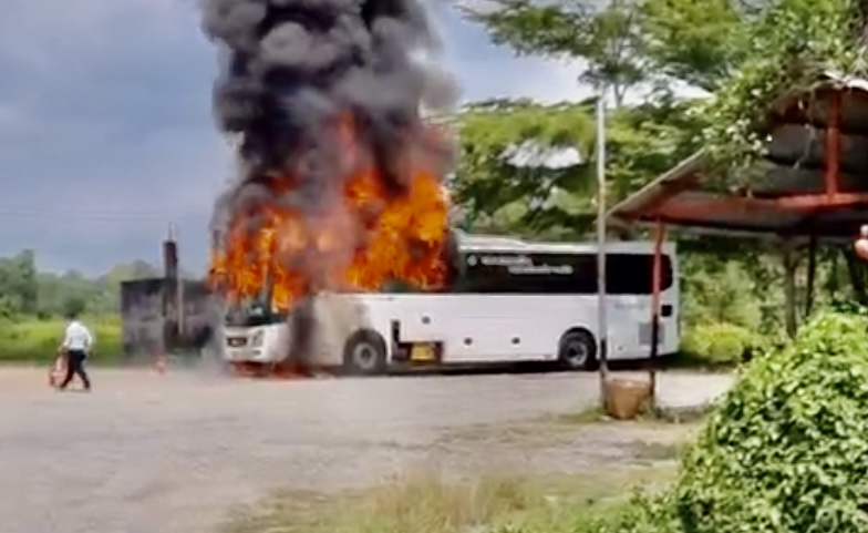 Trước đó, chiếc xe khách mang biển số tỉnh Bà Rịa - Vũng Tàu đậu tại bãi xe một nhà hàng trên tỉnh lộ 15 thì bất ngờ bốc cháy. Bảo vệ nhà hàng thông báo với tài xế đến mở cửa xe, đồng thời huy động bình chữa cháy mini dập lửa nhưng không thể khống chế.