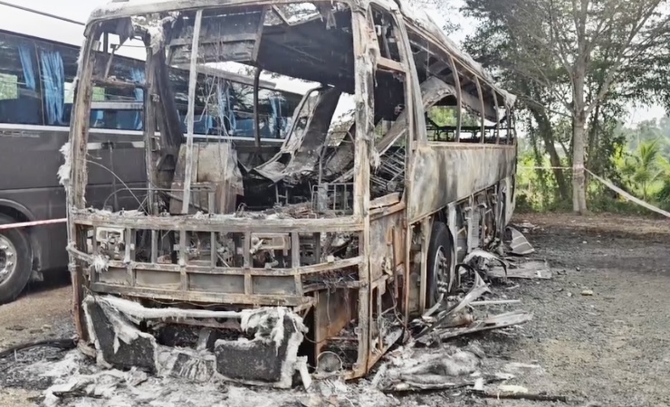 04/05/2025 03:13Xe ô tô 45 chỗ chở khách du lịch bị cháy trơ khung khi ghé vào nhà hàng