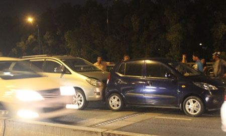 05/01/2015 15:52Xe ô tô liên tục đâm nhau, giao thông ùn tắc nhiều giờ