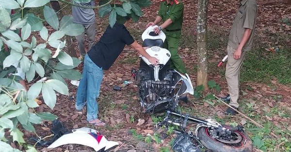 Cú va chạm mạnh khiến cả 2 xe văng xa. Trong đó, chiếc mô tô phân khối lớn bay hơn 60 m, văng xuống rừng cây bên đường, gãy đôi.