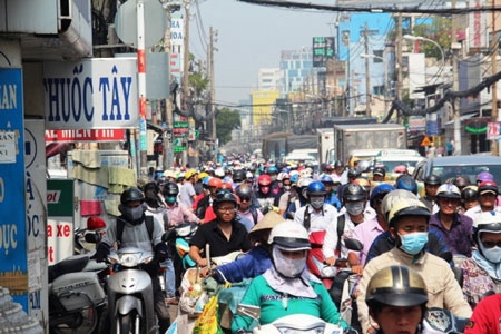 | Đường Cách Mạng Tháng Tám bị ùn tắc nghiêm trọng sau vụ tai nạn - Ảnh Đức Phú |