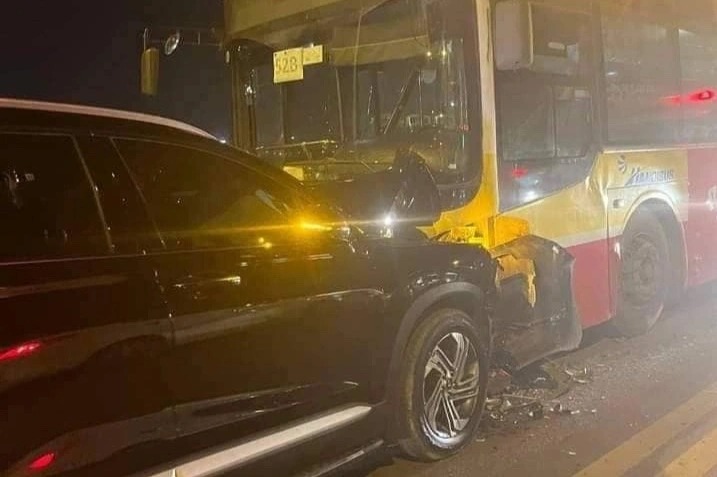 Vào thời gian trên, ôtô Hyundai SantaFe di chuyển hướng Hai Bà Trưng - Long Biên đối đầu trực diện vào xe buýt tuyến 52B đi hướng ngược lại.