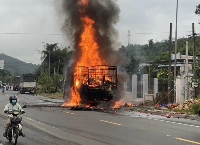 Sau hơn 20 phút vụ cháy xảy ra, lực lượng PCCC đã tới hiện trường, dập tắt được ngọn lửa. Tuy nhiên lúc này chiếc xe tải đã cháy rụi.