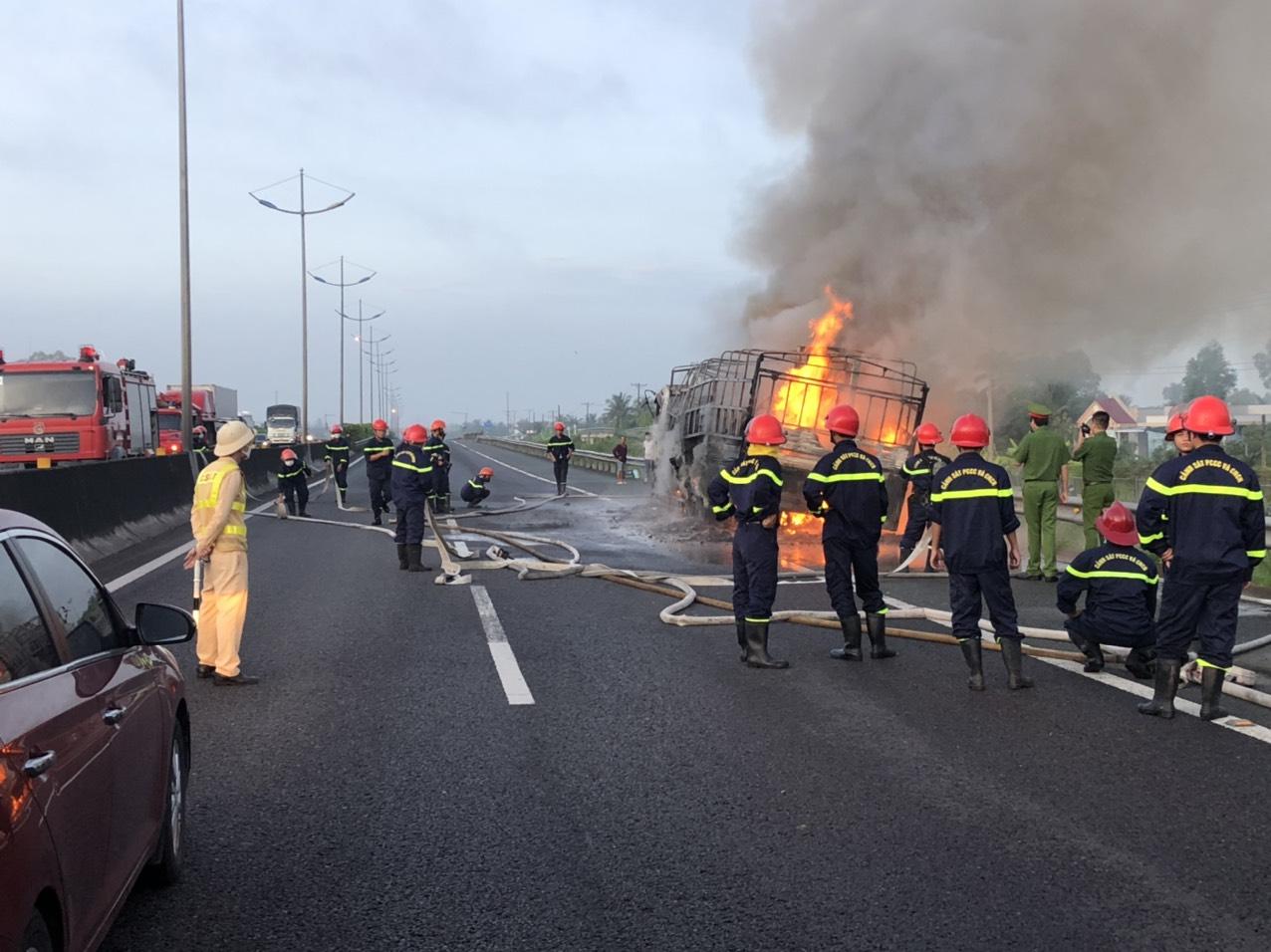 Đến 7h30, hiện trường vụ hỏa hoạn đã được cơ bản khắc phục, giao thông trên tuyến cao tốc theo hướng TP.HCM đi Tiền Giang ổn định trở lại.
