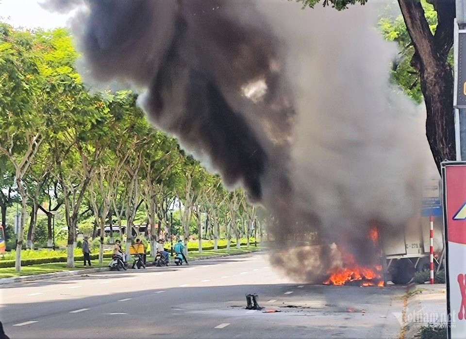 Khoảng 12h trưa 18/6, xe tải mang biển kiểm soát tỉnh Thanh Hóa chạy trên đường Nguyễn Sinh Sắc (quận Liên Chiểu, TP Đà Nẵng), theo hướng từ đường Tôn Đức Thắng ra đường biển Nguyễn Tất Thành thì bất ngờ bốc cháy phía sau thùng xe.