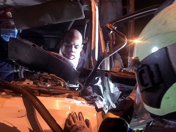 Hậu quả, tài xế xe tải là anh Trần Văn Quỳnh (SN 1983, quê Hải Dương) cùng 2 phụ xe là anh Nguyễn Văn Điệp (SN 1980) và Nguyễn Phú Thành (SN 1991) bị thương nặng, mắc kẹt trên cabin. Toàn bộ phần đầu xe tải biến dạng hoàn toàn.