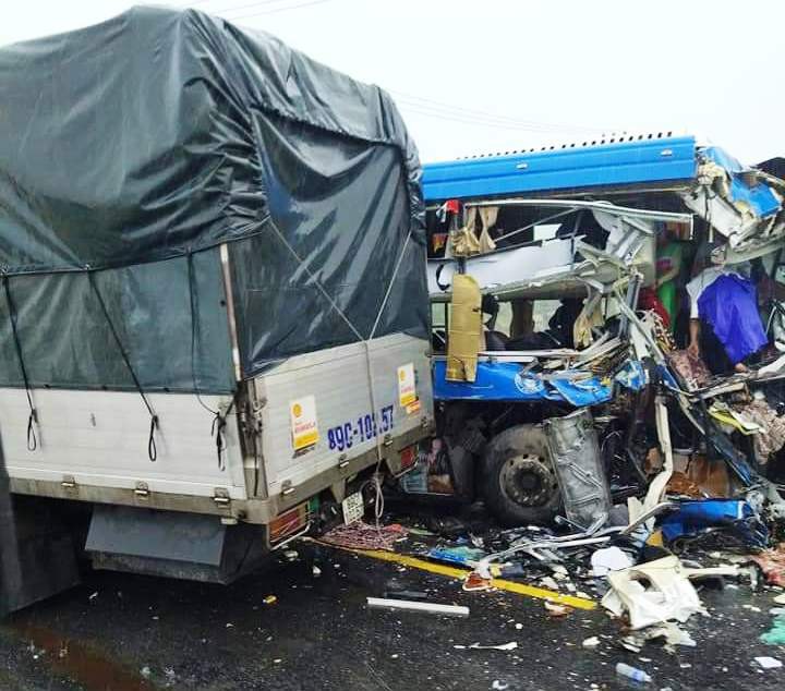 Thông tin ban đầu, cho biết thời điểm trên xe tải BKS: 89C - 102.57 (chưa rõ danh tính tài xế) chạy hướng Bắc - Nam đang lưu thông trên đường, thì bất ngờ va chạm với xe khách giường nằm BKS: 17B - 012.10 đang chạy theo hướng ngược lại. Cú va chạm làm cả 2 xe bị hư hỏng nặng.