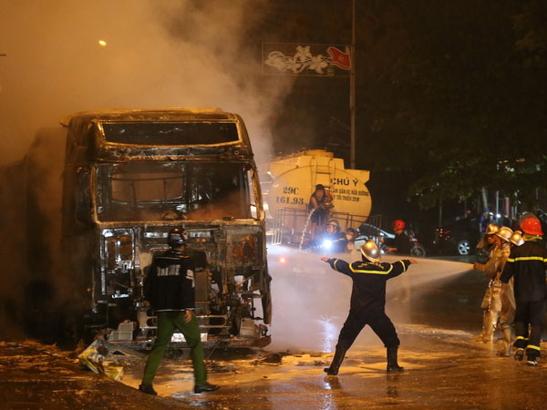 Nhận được tin báo, Cảnh sát PCCC đã điều ba xe chuyên dụng cùng nhiều chiến sĩ đến hiện trường cứu hỏa. Xe bồn của Công ty môi trường đô thị Xuân Mai được huy động đến để lấy nước dập lửa, tuy nhiên ngọn lửa lớn đã nhanh chóng lan ra toàn thân xe. Sau khoảng 30 phút, đám cháy được không chế.