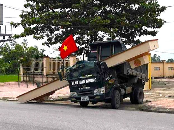 Theo đó, khoảng 13h cùng ngày, một chiếc xe ôtô tải mang BKS: 35C-145.90, đi từ phía trong sân nhà văn hóa thôn Cổ Loan ra đường. Khi đi qua cổng, chiếc xe va chạm vào cổng nhà văn hóa, khiến mái cổng phía trên đổ sập vào cabin xe tải.