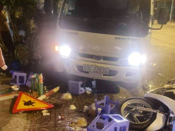 06/01/2020 16:05Xe tải lao lên vỉa hè tông bàn nhậu giữa khuya, 2 người nguy kịch