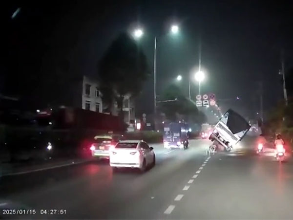 15/01/2025 21:15Xe tải lật giữa đường suýt đè trúng 4 người