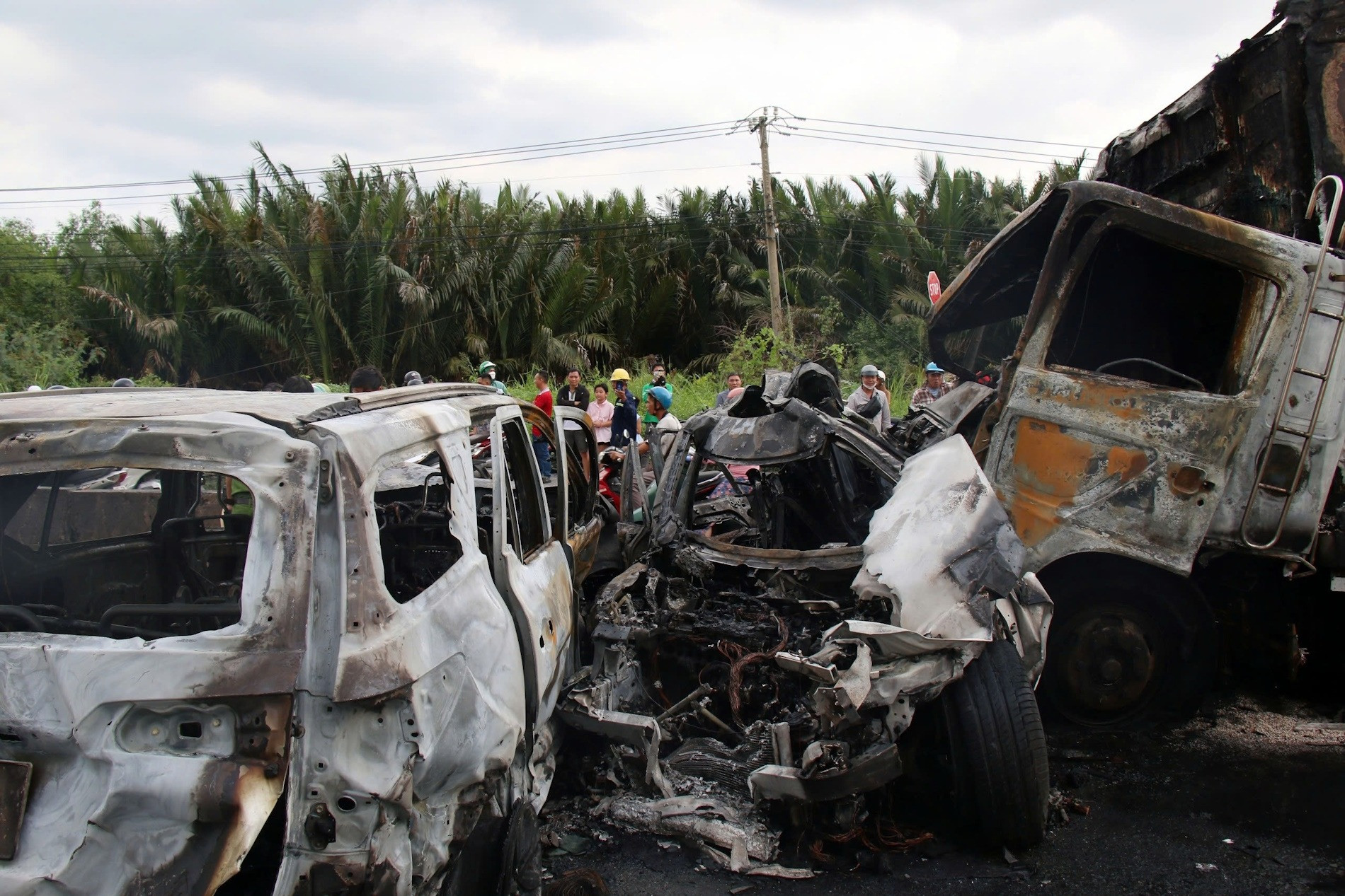 Như VietNamNet đã thông tin, vụ xe tải tông liên hoàn 7 ô tô xảy ra ở dốc cầu Phú Mỹ, TP Thủ Đức vào lúc 14h40 ngày 8/8 khiến các phương tiện hư hỏng nặng, trong đó có 3 ô tô cháy tại hiện trường.