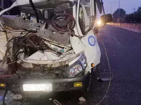 Cú tông quá mạnh khiến đầu xe tải nát bét biến dạng, tài xế Nguyễn Thanh Tuấn bị thương nặng, 2 người đi chung tử vong tại chỗ và bị kẹt lại trong cabin. Tài xế bị thương nặng được đưa đi cấp cứu.