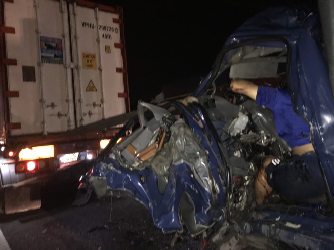 Cú tông cực mạnh ở tốc độ cao khiến cho đầu xe tải bẹp dúm, tài xế và phụ xe trong ca bin tử vong tại chỗ sau pha va chạm trực diện này. Người dân nhanh chóng phát hiện tai nạn và đưa thi thể 2 nạn nhân ra ngoài.