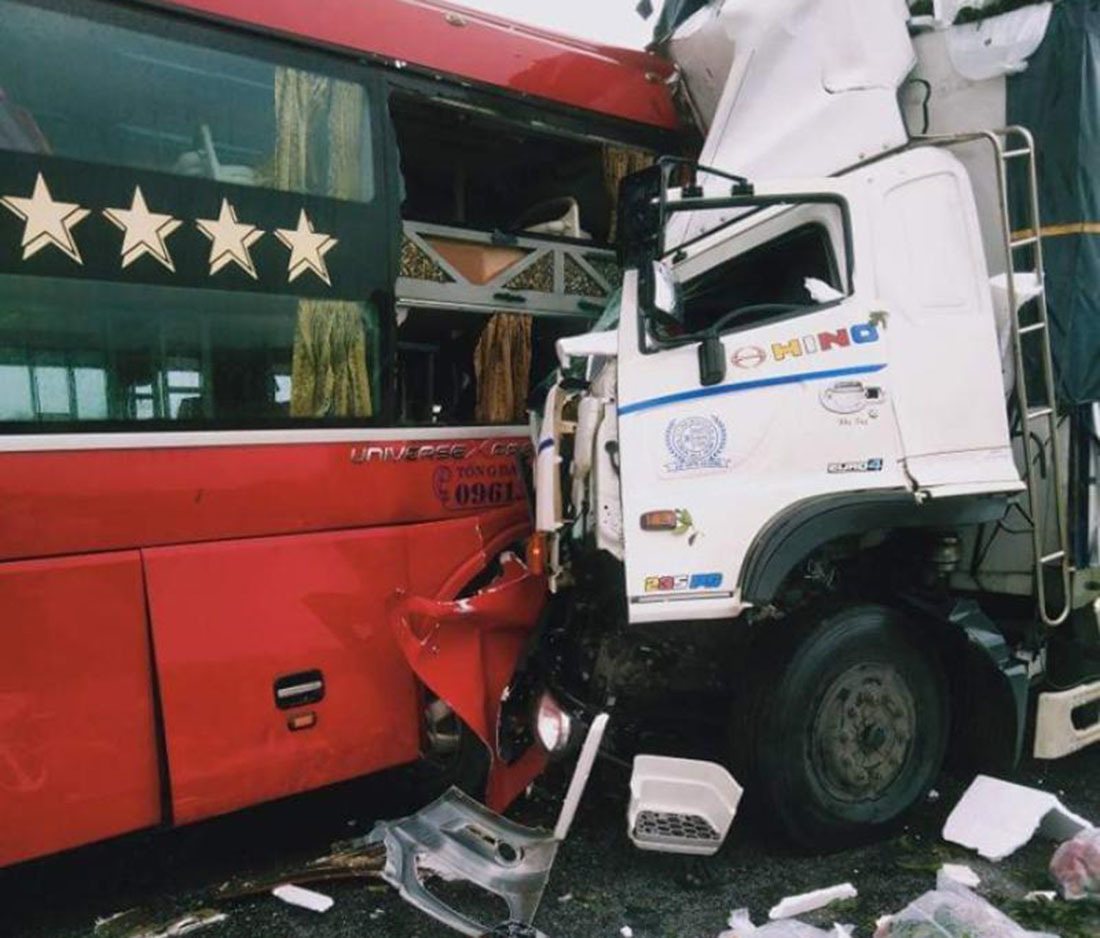 Sau cú đâm trực diện của xe tải vào xe khách tại tuyến tránh Vinh (Nghệ An), phụ xe tải tử vong, nhiều người khác bị thương.