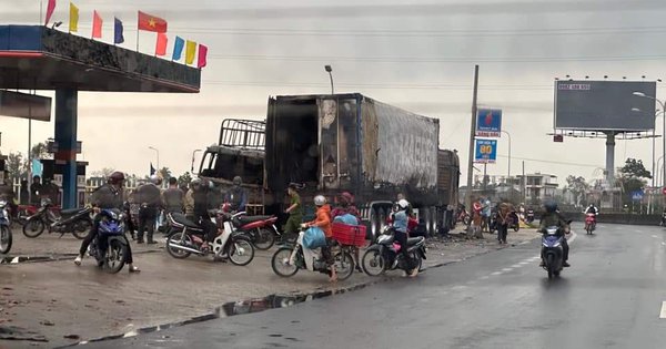 Tại hiện trường, chiếc xe tải bị cháy gần như trơ khung, nhiều hàng hóa trên xe bị thiêu rụi; thùng xe container cũng bị cháy, đầu xe bị ảnh hưởng. Nguyên nhân ban đầu được xác định là do chập điện trên xe tải.