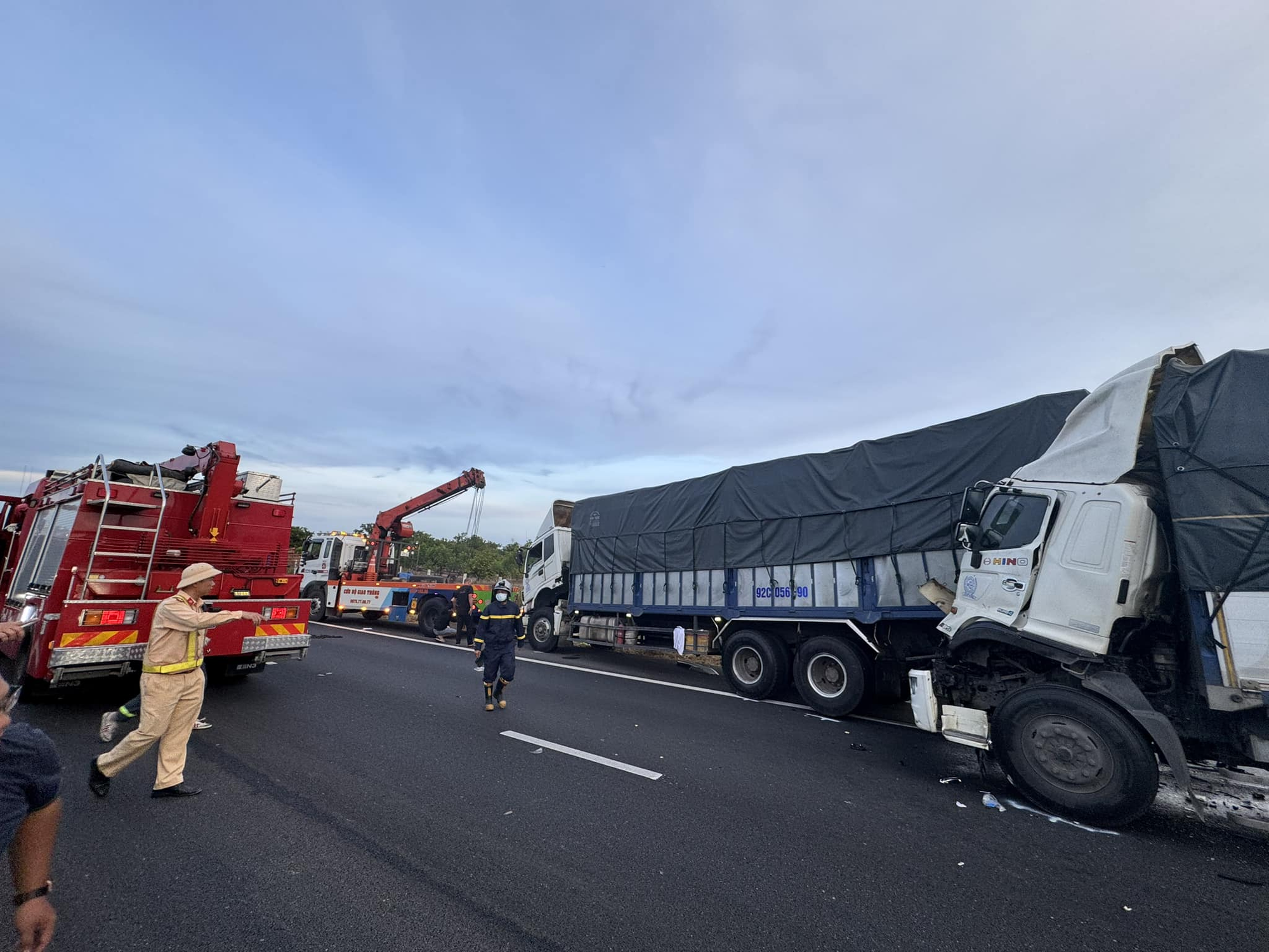 Tại đây, lực lượng chức năng đã dùng thiết bị chuyên dụng kéo phần cabin bị dẹp nát để đưa người bị mắc kẹt ra ngoài. Những người bị thương được đưa đi cấp cứu sau đó. Vụ tai nạn gây kẹt xe nghiêm trọng đoạn qua cao tốc trên. Hiện nguyên nhân vụ tai nạn đang được điều tra.