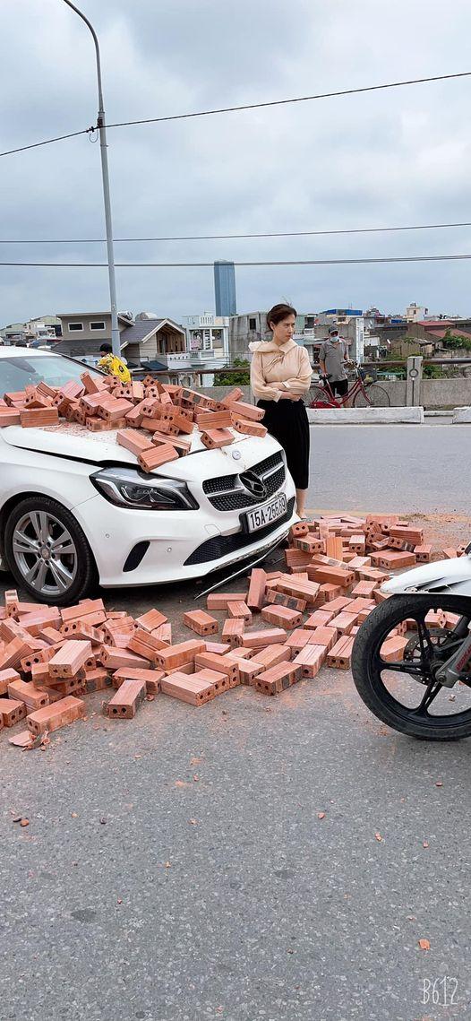 Vào sáng ngày 20/04, trên mạng xã hội chia sẻ rất nhiều hình ảnh về một vụ va chạm giao thông xảy giữa xe chở gạch và chiếc Mercedes xảy ra trên cầu An Dương, TP Hải Phòng.