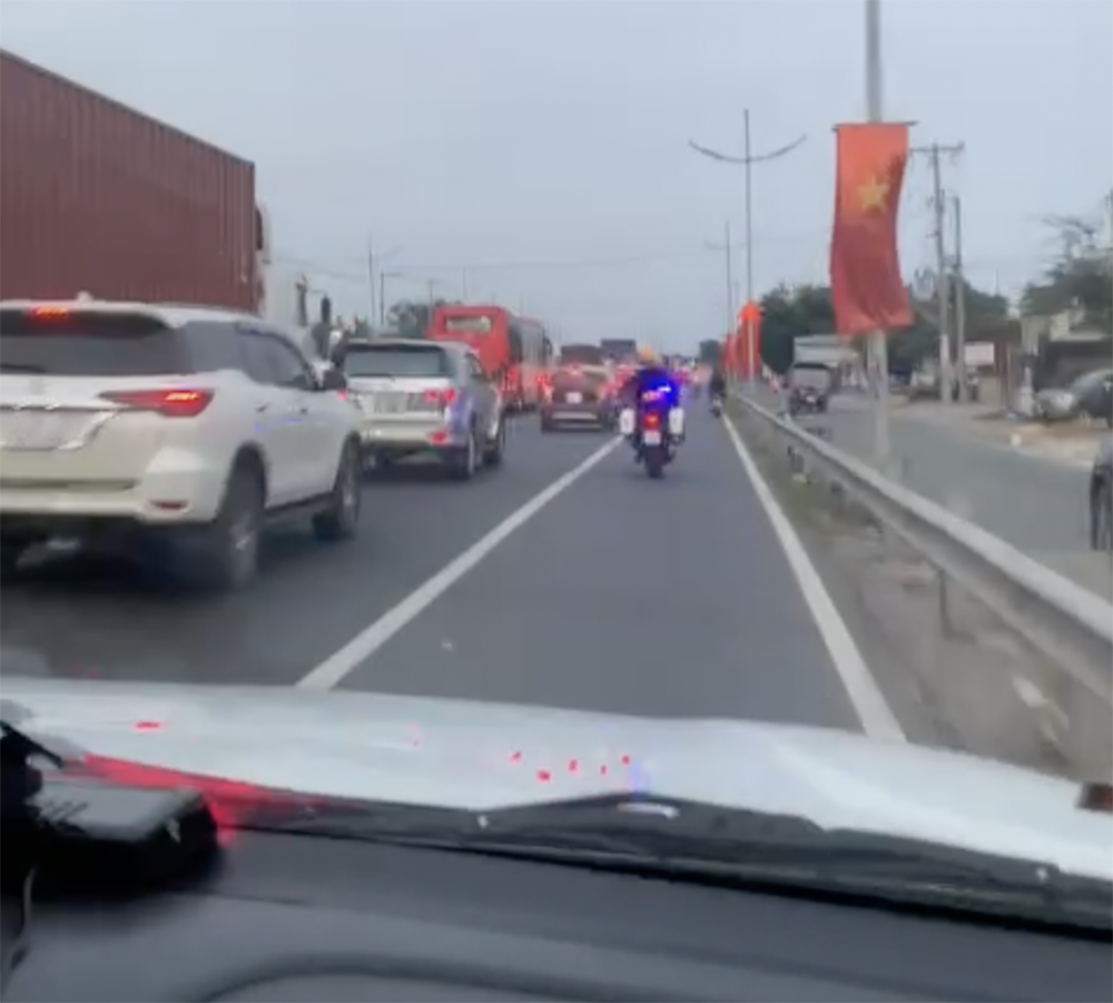 Xác định đường đông đúc, việc di chuyển cháu bé sẽ mất nhiều thời gian, có nguy cơ ảnh hưởng đến tính mạng nên Đội CSGT đường bộ cao tốc số 7 lập tức phân công một tổ CSGT dùng xe mở đường.