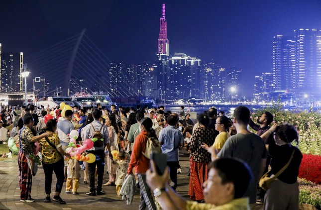 TPHCM: Chen chân trên đường hoa Nguyễn Huệ vui đón giao thừa