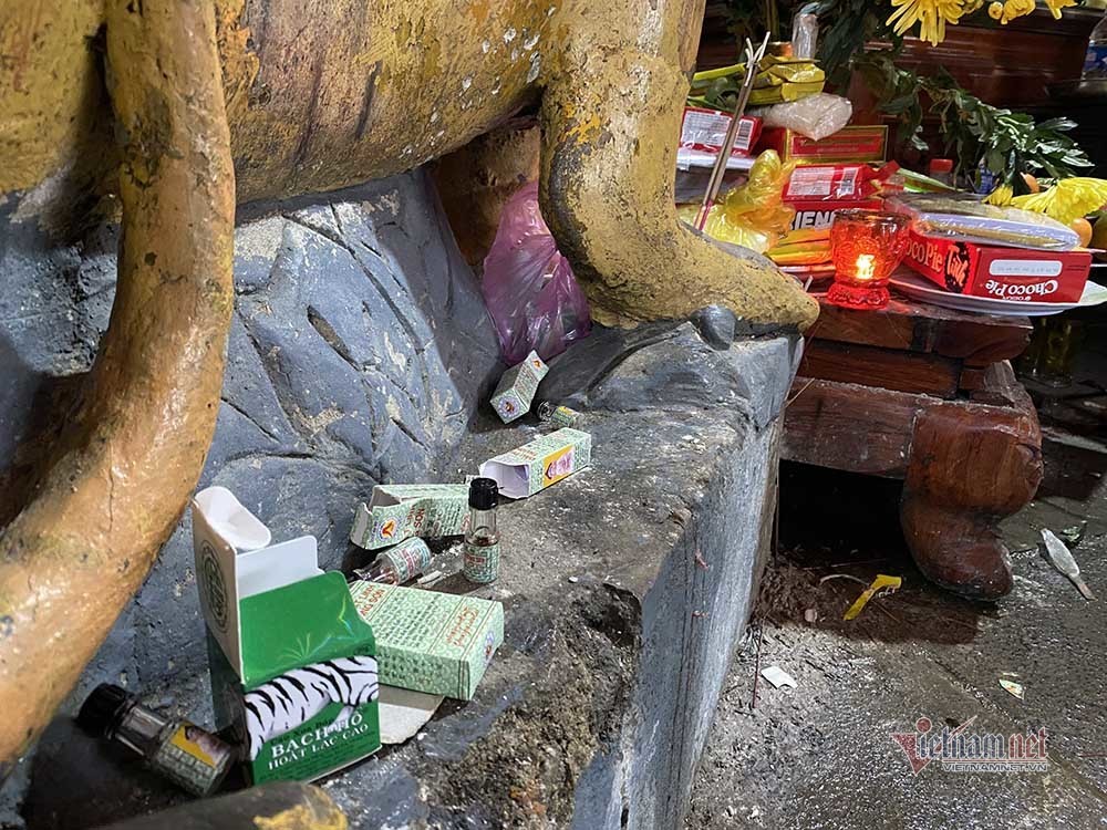 Chị Đặng Cẩm Tú (trú huyện Nghi Xuân) cho biết: “Tôi có bệnh hay đau đầu gối, nghe tương truyền hổ ở đây có thể chữa bệnh nên tôi mua lễ vật, mang theo dầu gió xoa lên chân của hổ, rồi xoa lên đầu gối của mình. Hi vọng năm nay đầu gối của tôi bớt đau nhức”.