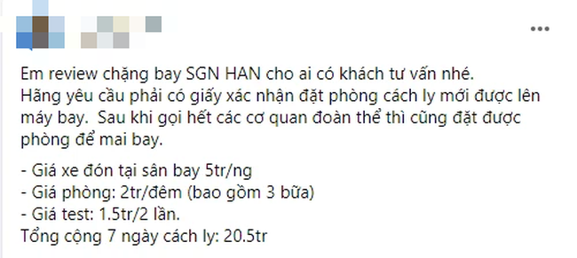 Chưa kể, người này cho biết, khách hàng phải có xác nhận đặt phòng cách ly trước mới được lên máy bay.