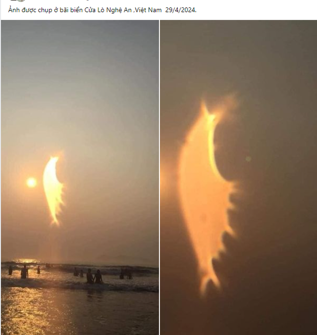 Trong bức ảnh chụp tại biển Cửa Lò, hiện tượng flare đã vô tình tạo thành vệt sáng khiến nhiều người liên tưởng tới hình thù đặc biệt. Hiện tượng trên chỉ là một sự ngẫu nhiên, hoàn toàn có thể được lý giải một cách khoa học, không phải điềm báo xấu nào.