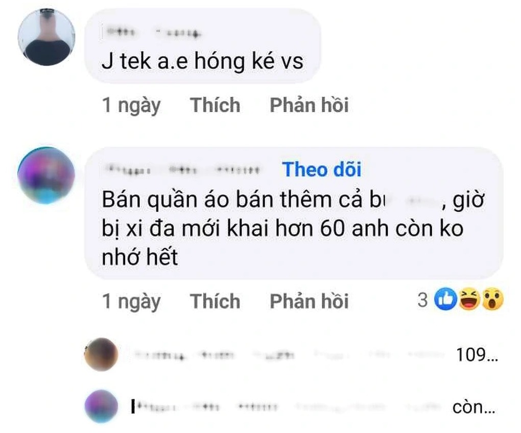 Dưới phần bình luận, một tài khoản khác đã viết: "Bán quần áo bán thêm cả "b...", giờ bị HIV mới khai hơn 60 anh còn nhớ không hết..." hay một bình luận khác viết: "Thấy bảo bà U40 gieo rắc HIV cho 300 mạng Phú Lương. Kinh vãi linh hồn"...