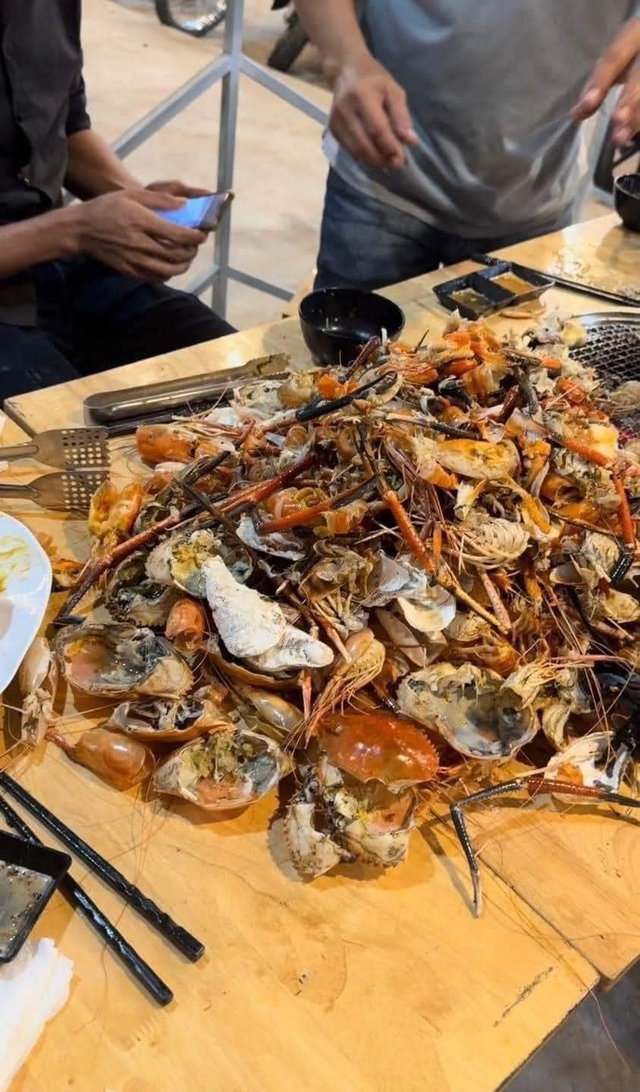 Mới đây, mạng xã hội lan truyền đoạn video ghi lại hình ảnh hậu bữa ăn buffet với một núi vỏ các loại hải sản gồm vỏ tôm, cua, hàu..., nhiều đến mức chất chồng lên nhau, kín cả một góc bàn. Theo chia sẻ thì đây là số vỏ hải sản sau bữa ăn của 4 người tại quán buffet hải sản với mức giá 159.000 đồng/người.