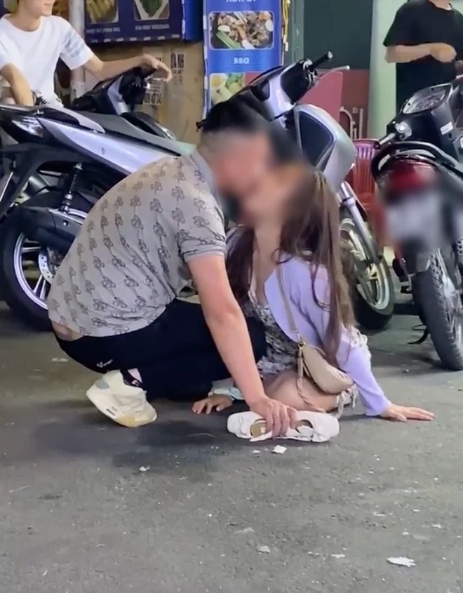 Theo hình ảnh đoạn clip cho thấy, một cô gái mặc chiếc váy màu tím nghi quá chén, không còn tỉnh táo đang ngồi bệt xuống đường. Lúc này, nam thanh niên được cho là bạn trai cũng ngồi đối diện dỗ dành để đi về.